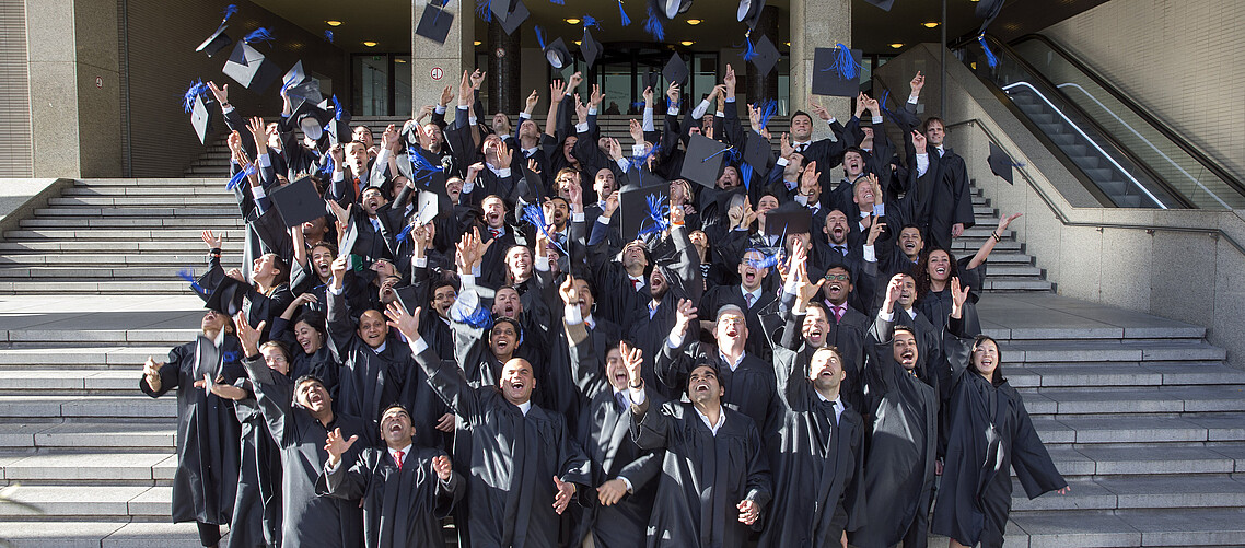 In total, 182 students graduated. The 10 dual degree graduates received their MBA degree and the Master in Financial Management degree. Among the graduates, 13 reached a high level of achievement according to examiners and were on the Dean’s Honours list. From EMBA2014, they are Shobhit Arora, Jordi Butterhoff, Geert Beckers, Roberta De Lorentiis, and Robert-Paul Berretty. From MBA2015, they are Marya Izquierdo Bloemen, Marieke Heikens, Leilani Meijer-Morison, Gagan Arora, Rahul Shankar, Tamas Baranyai, and Sammi Vanderstok. And from the MBA2015/Master in Financial Management Dual Degree programme, Matthias Fritsche is on the Dean’s Honours list for his achievements. Graduates Shobhit Arora and Jordi Butterhoff from EMBA’14, and Marya Izquierdo Bloemen and Marieke Heikens from MBA’14 from the Dean’s Honours list also received Honours with Academic Distinction.