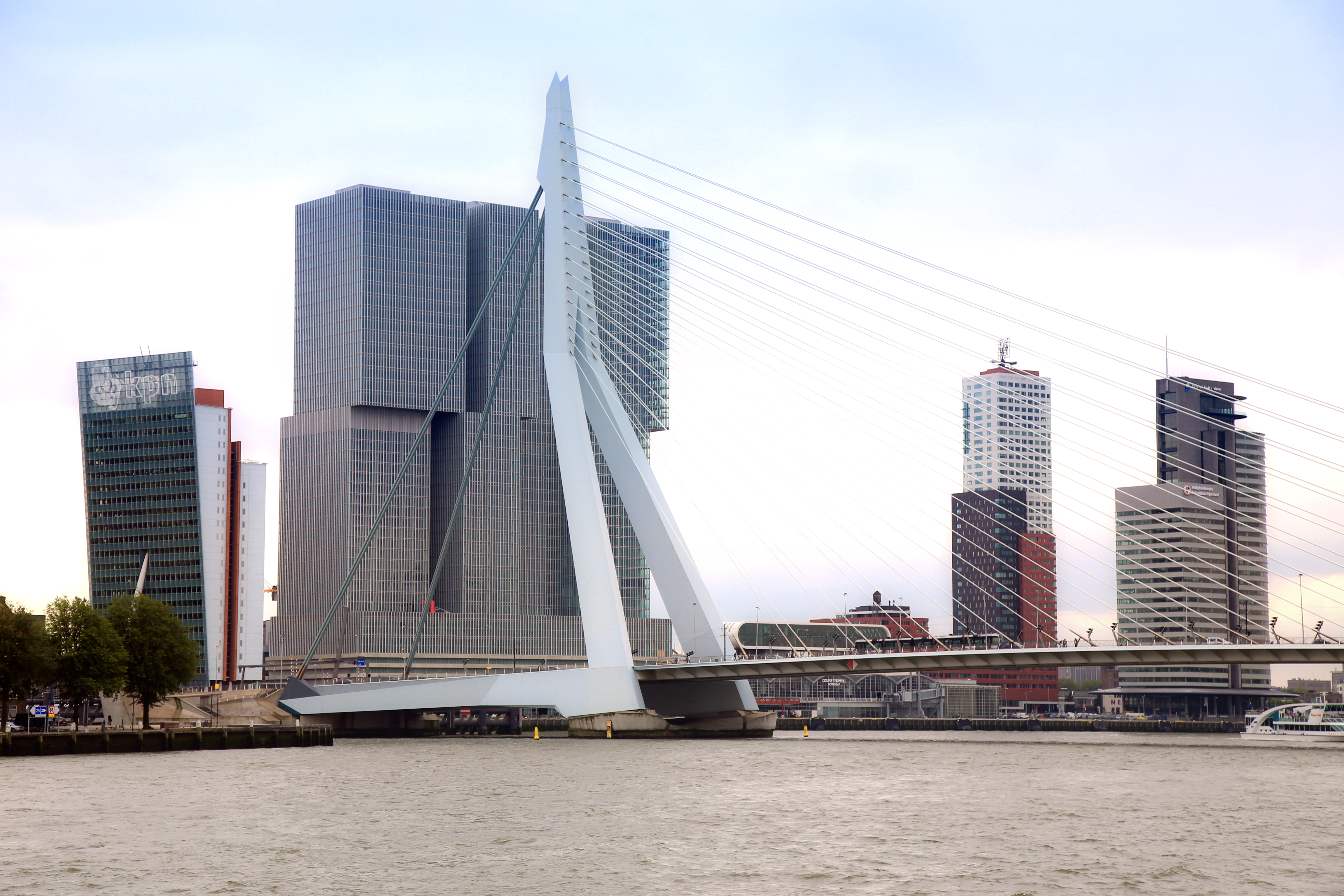 Rotterdam’s most famous bridge, nicknamed “The Swan.”