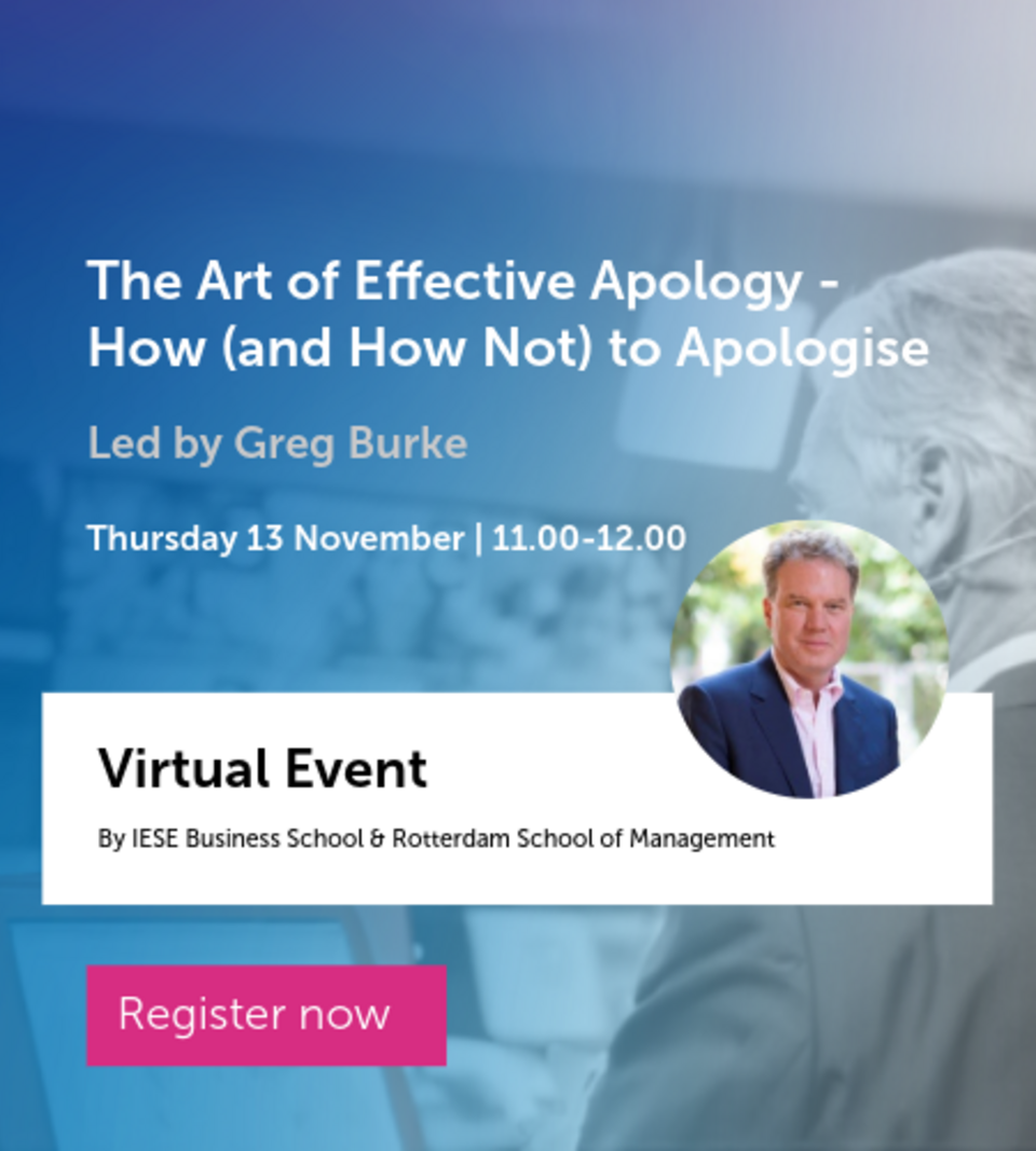 In today’s hyperconnected world, a single moment can redefine a leader’s reputation. The Luis Rubiales case offers a striking example of how leadership, communication, and corporate culture can collide under public scrutiny. Join us for a virtual session on Thursday, 13 November, hosted by Rotterdam School of Management, Erasmus University, in collaboration with IESE Business School.