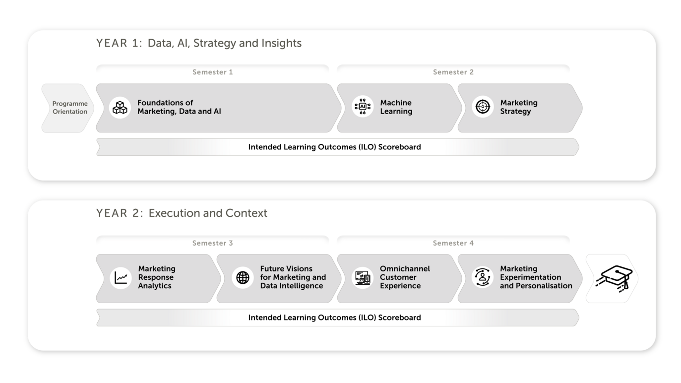 This two-year programme, structured over four dynamic semesters, equips students with the analytical and technical skills needed to tackle real-world marketing challenges using data-driven insights.