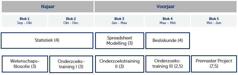 Het curriculum van de premaster is gericht op het vergroten van jouw academische vaardigheden en dient door iedere premaster student gevolgd te worden, ongeacht de master die je van plan bent te kiezen.