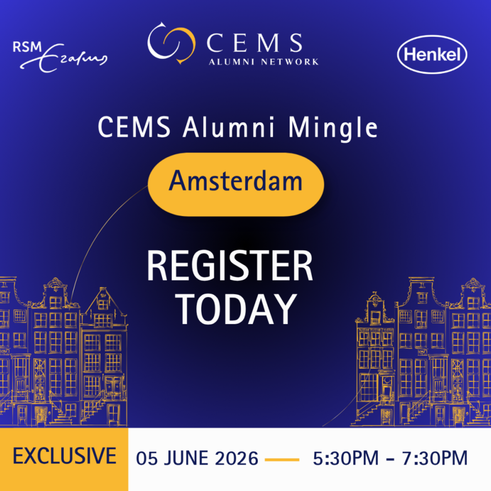 Join this inspiring CEMS Alumni Mingle in Amsterdam, bringing together professionals for an evening of connection, learning, and conversation. In this workshop, Dr. Philip Eskenazi (RSM CEMS Alum 2009) shares key insights to help you and the people around you grow happier. This special gathering will be hosted by the CEMS Corporate Partner, Henkel, with an apéro offered by the CEMS Global Office Alumni Relations and Rotterdam School of Management, Erasmus University.