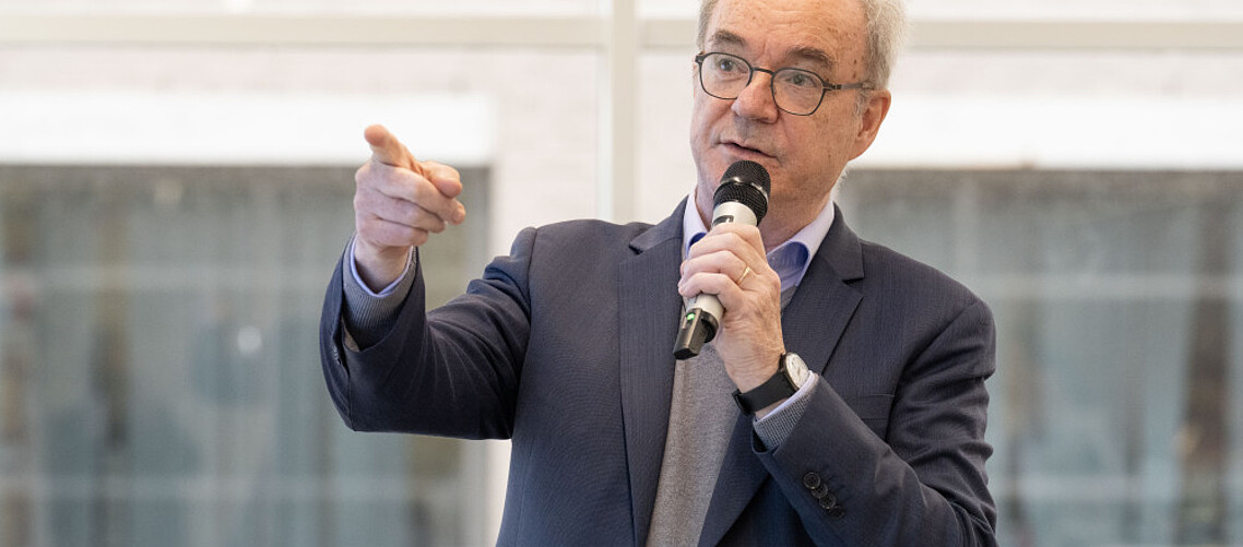 The Dies Natalis had the theme 'Curiosity connects, knowledge changes'. Moderator Simone van Trier introduced the Dies Natalis ceremony by summarising EUR’s role as a university that seeks to be connected to everyone in Rotterdam. A cautiously optimistic Chair of the Executive Board, Annelien Bredenoord explained that the new Strategy 2030 of Erasmus University aims to demonstrate its social licence to operate internationally, particularly against the backdrop of government cuts to higher education. She said Patrick Bolton’s research and way of operating echoes the EUR-wide strategy for 2030 in looking for ways to build bridges between fundamental research and societal applications. His contributions have continued to shape the practical world of finance, from corporate decision-making to regulatory frameworks.