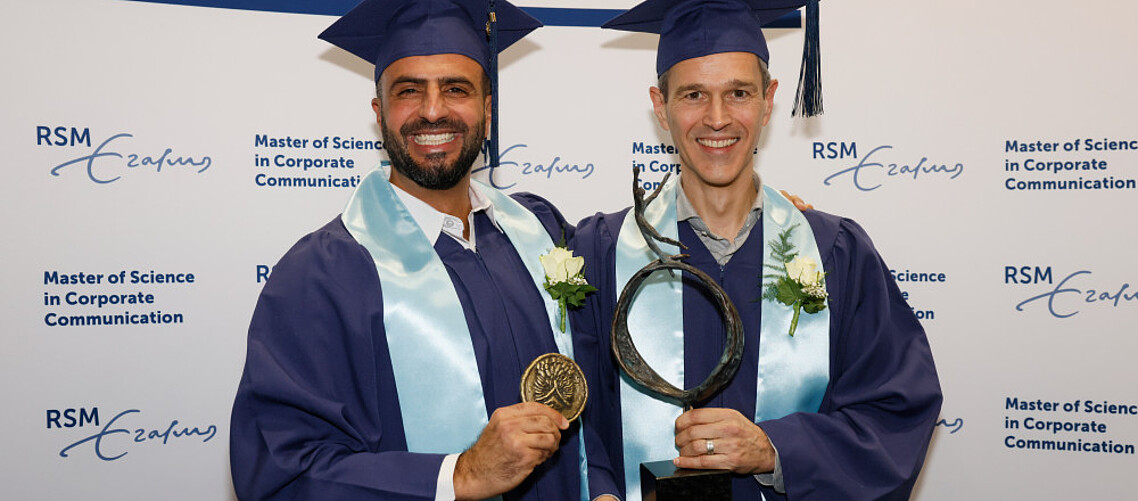 The Prof. Cees van Riel Award for Impact and Excellence in Corporate Communication 2025 was awarded to Constantijn Geluk for his thesis The role of internal communication in fostering organisational purpose. The jury described the work as exceeding master level expectations, earning a final grade of 9.5. “It embodies precisely the type of work this award seeks to recognise: research that not only excels academically but also demonstrates clear and inevitable impact on organisations, the corporate communication profession, and society at large.” Honorary mentions for their excellence were awarded to Marijn de Winter and Rendy Kee.